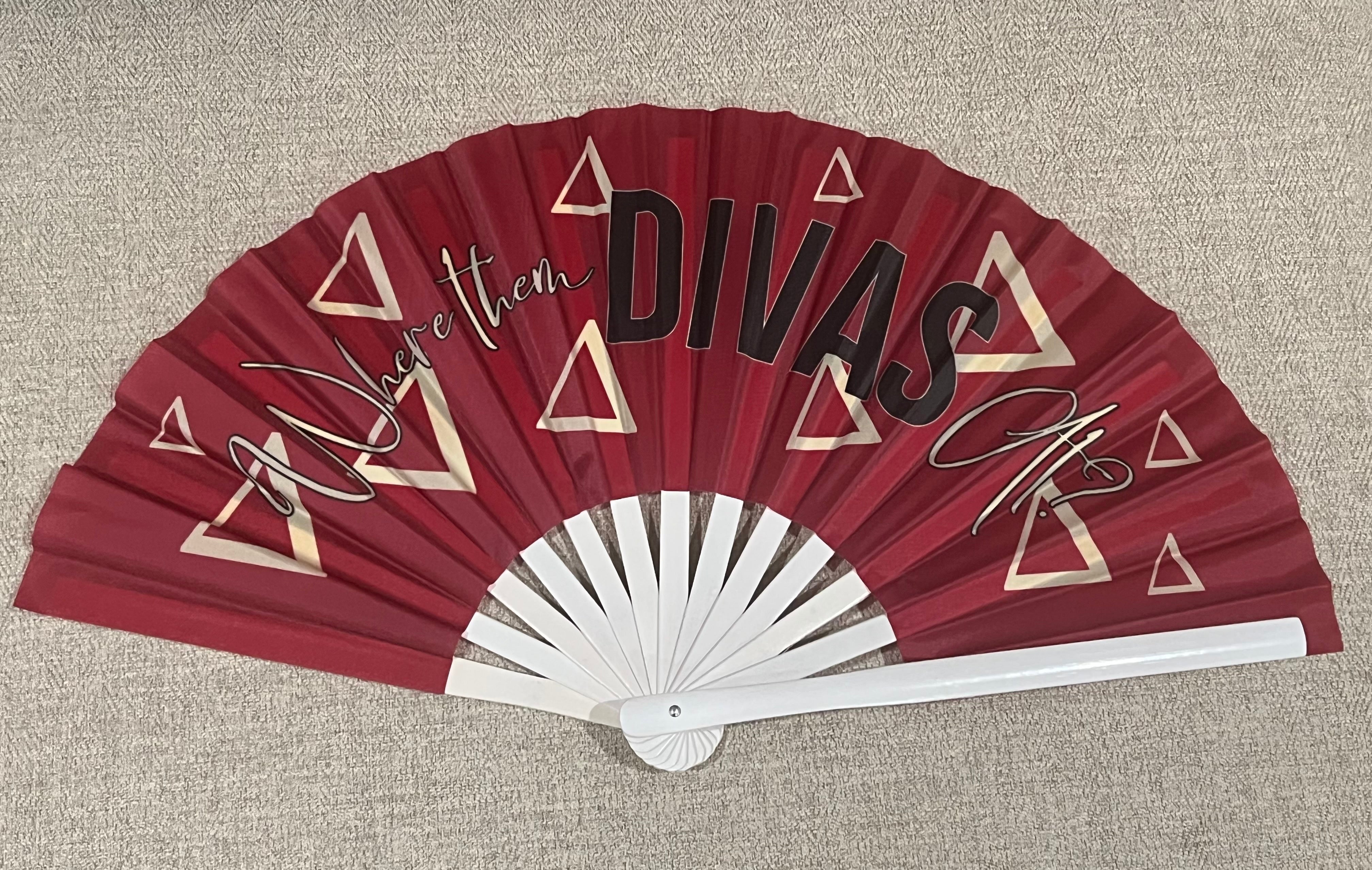 Where Them DIVAS At? – Delta Sigma Theta-Inspired Folding Fan | Crimson & Cream | 33cm
